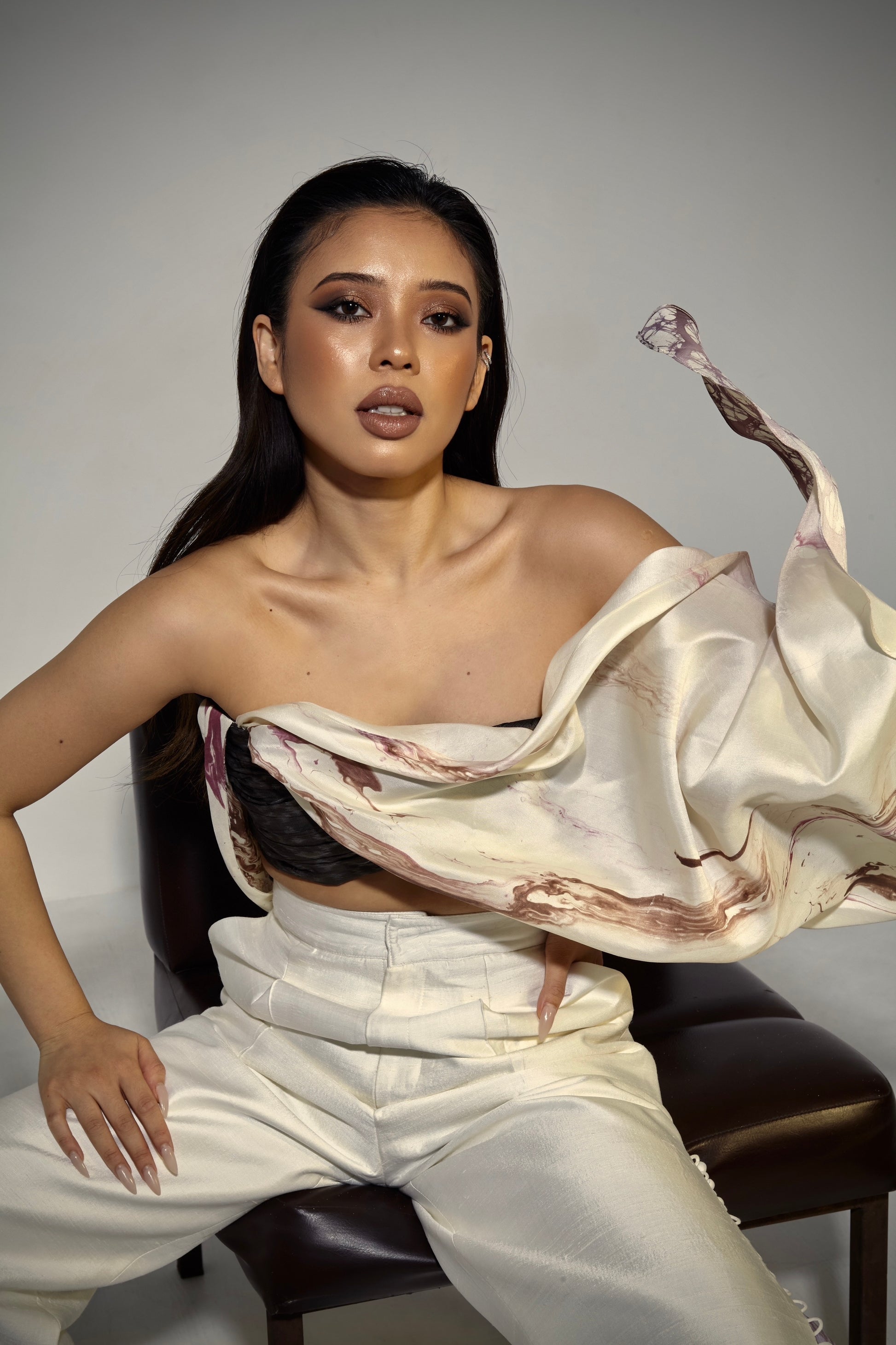 Introducing our stunning Signature Crop Top, a modern twist on traditional Thai elegance. Crafted with pleated drapery and adorned with side Sabai details, this versatile piece can be effortlessly styled across either shoulders or worn down for a chic look. Inspired by the rich heritage of Thai wrapped cloth, we've reimagined it into a contemporary and fashion-forward statement. Pair it with a high-waisted skirt for a sophisticated ensemble or mix and match with our signature trousers for a bold and stylish outfit. Embrace timeless style with a touch of cultural heritage in our Signature Crop Top.
