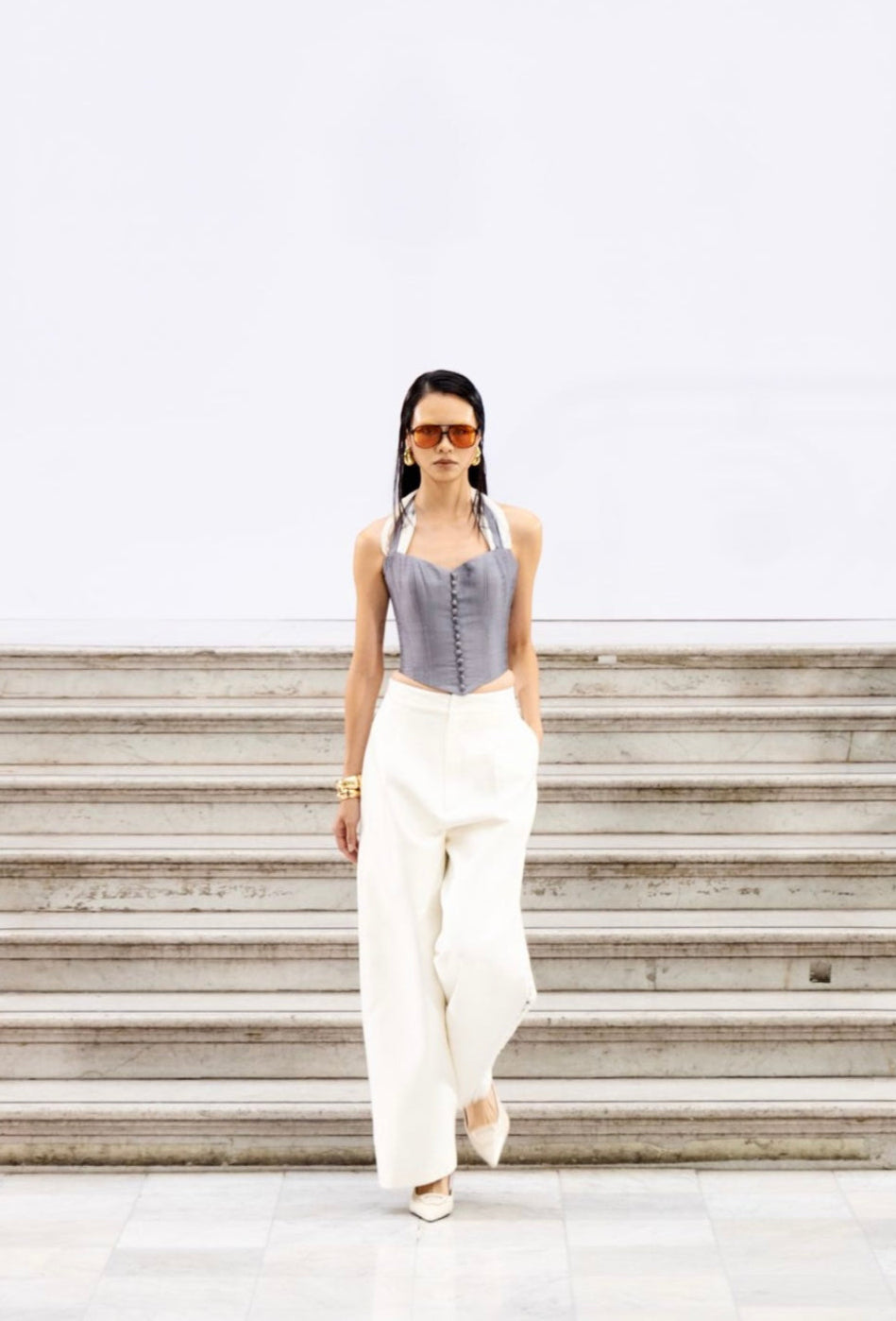 A perfect fusion of heritage and modern elegance, this corset is a statement of timeless sophistication. Style this elegant corset with Sirimon’s Signature Trousers from Drop I for a sleek and modern statement.